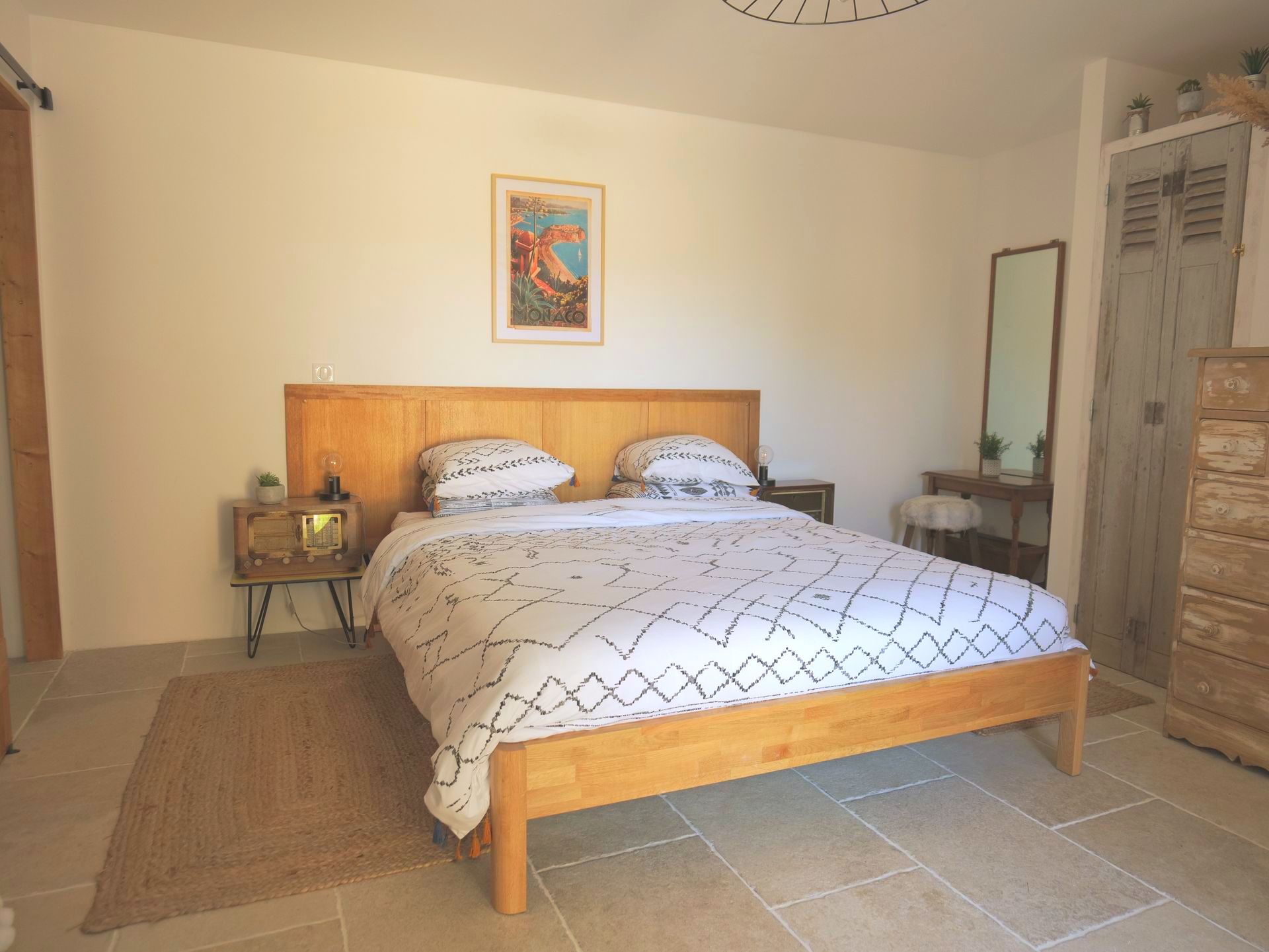 A separate vaulted ceiling sitting room with an impressive stone fireplace can be found for evenings of games, conversation or quiet reading in front of the wood burning stove or in summer it's a great place to seek respite from the hot summer days. This room is flooded with light from a wall of French windows leading on to the private terraces with step access down to a heated swimming pool (12m x 4.5m) which is open through our summer months.