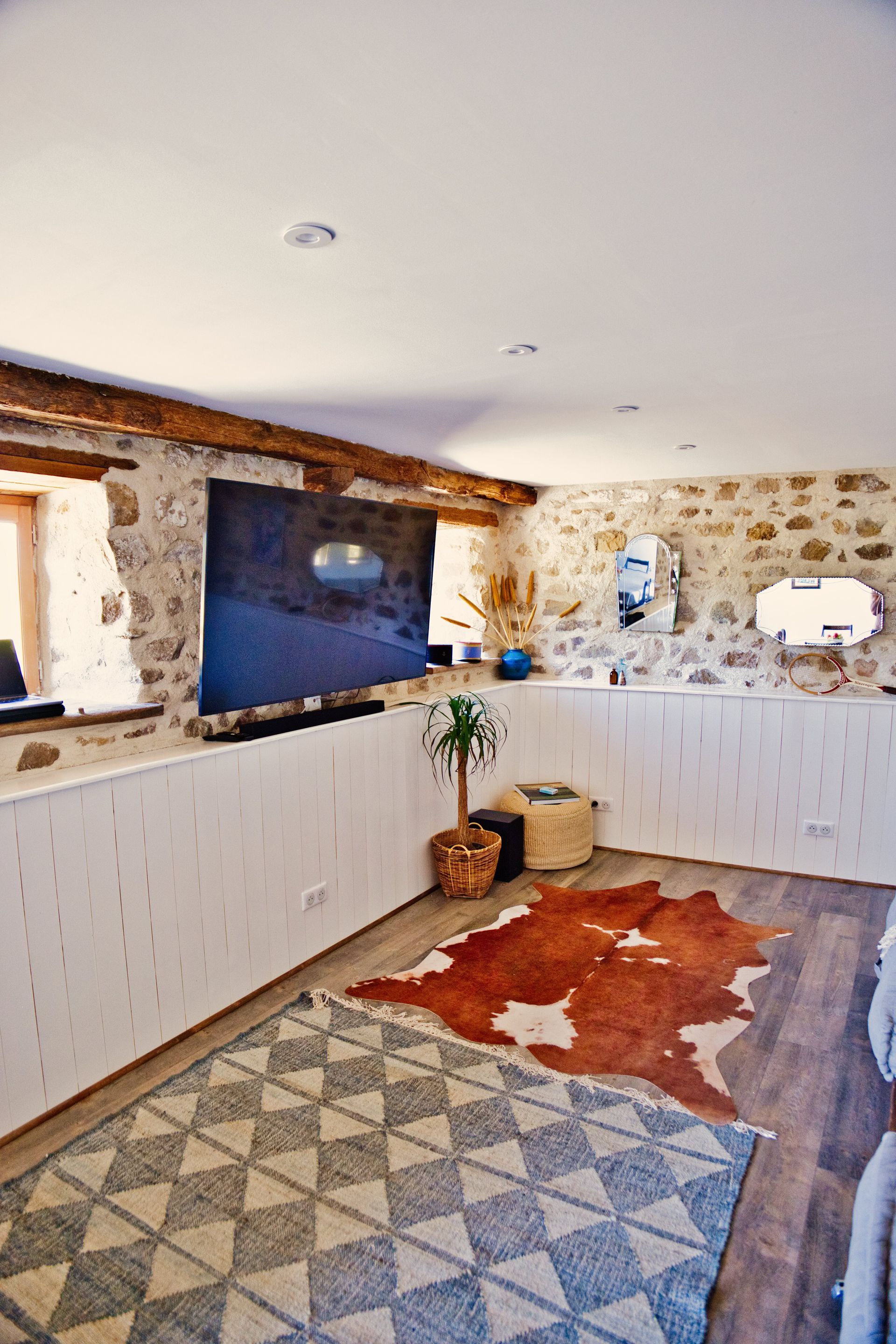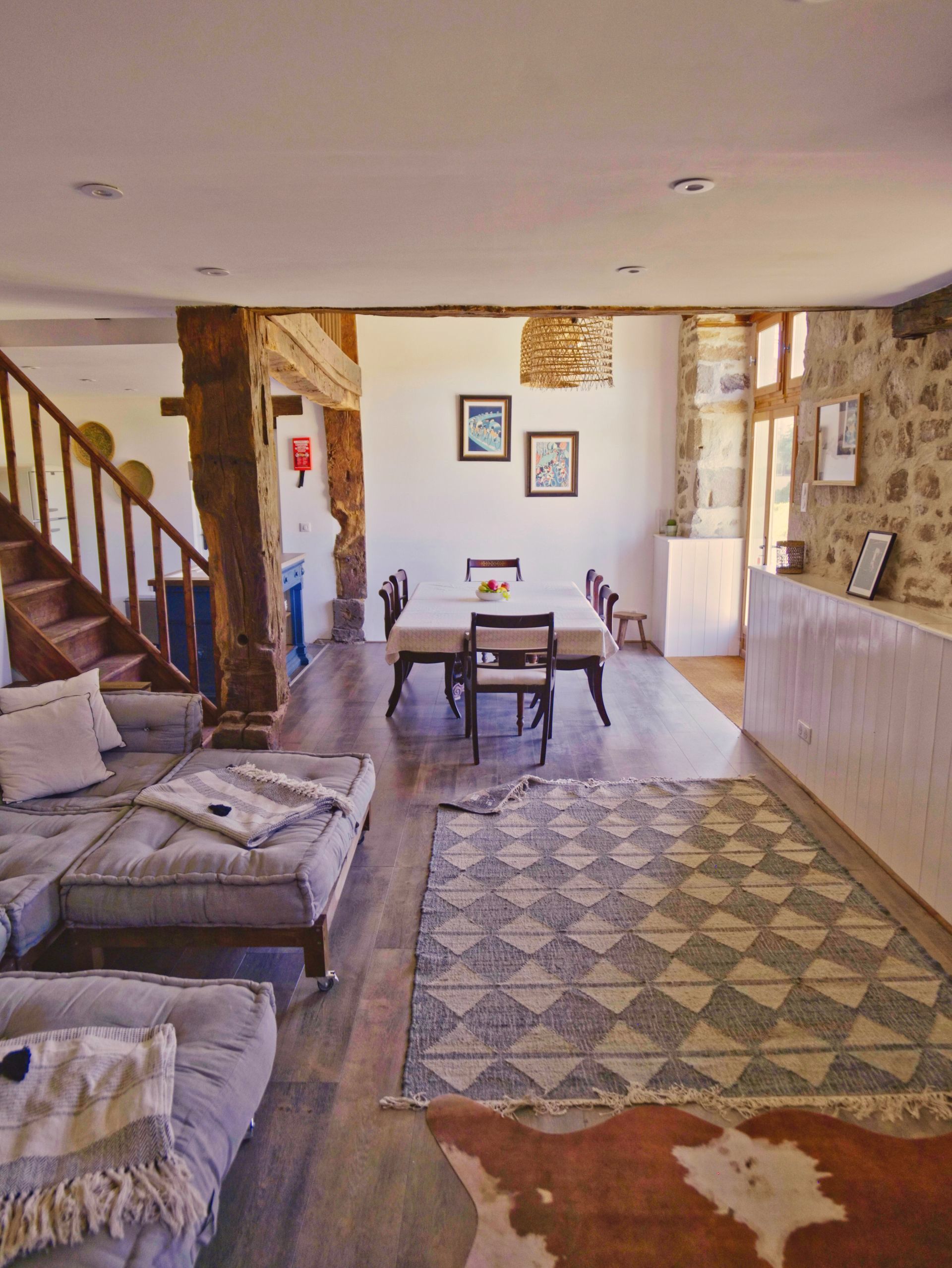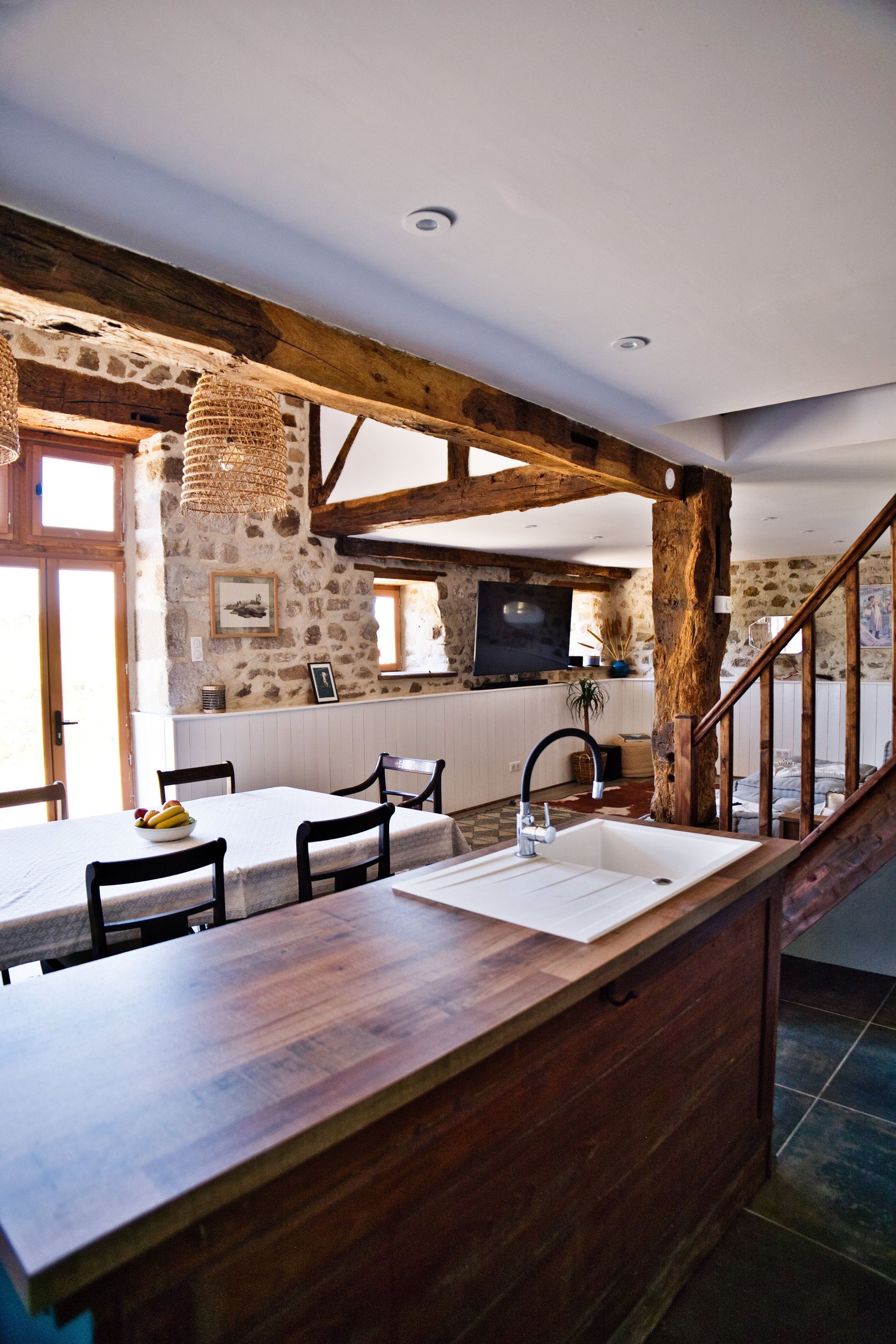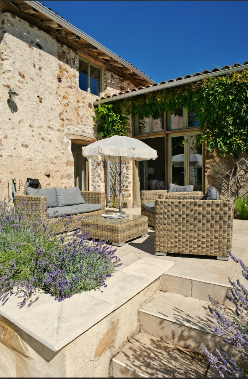 The four bedroom Gîte at Les Picardies has had its interiors carefully designed in a Bohemian style within a 19th century barn. Overlooking the heated swimming pool (12m x 4.5m) set within a walled garden, the gîte enjoys extensive private terracing (benefiting from ambient night lighting), with a pergola furnished with outside sofas and a dining table.