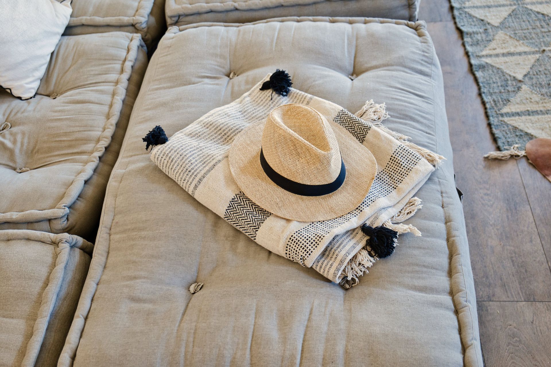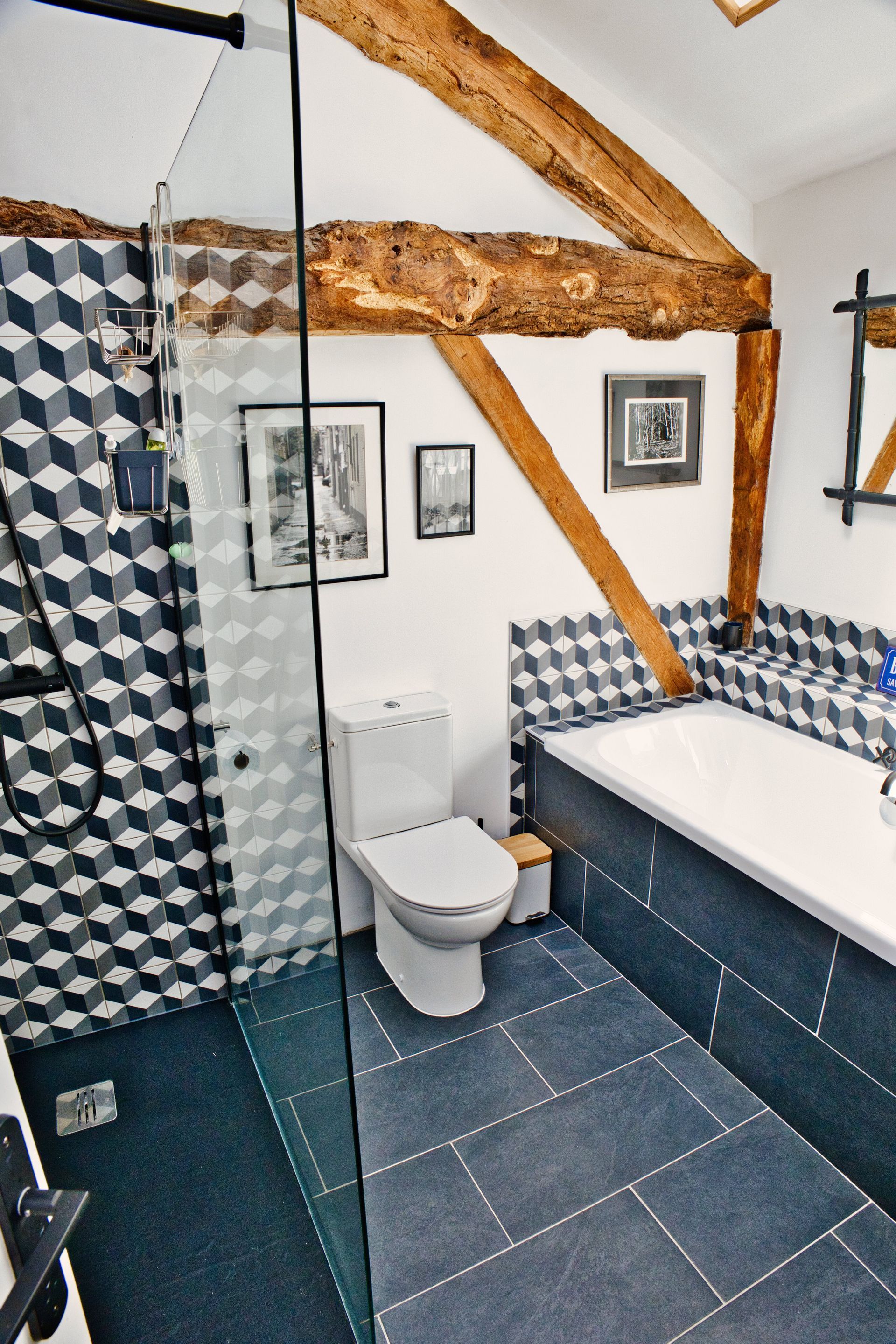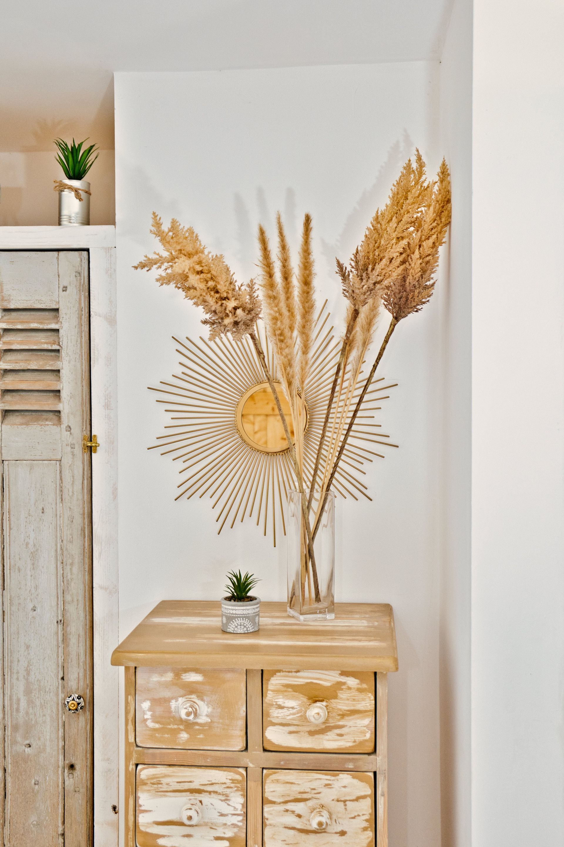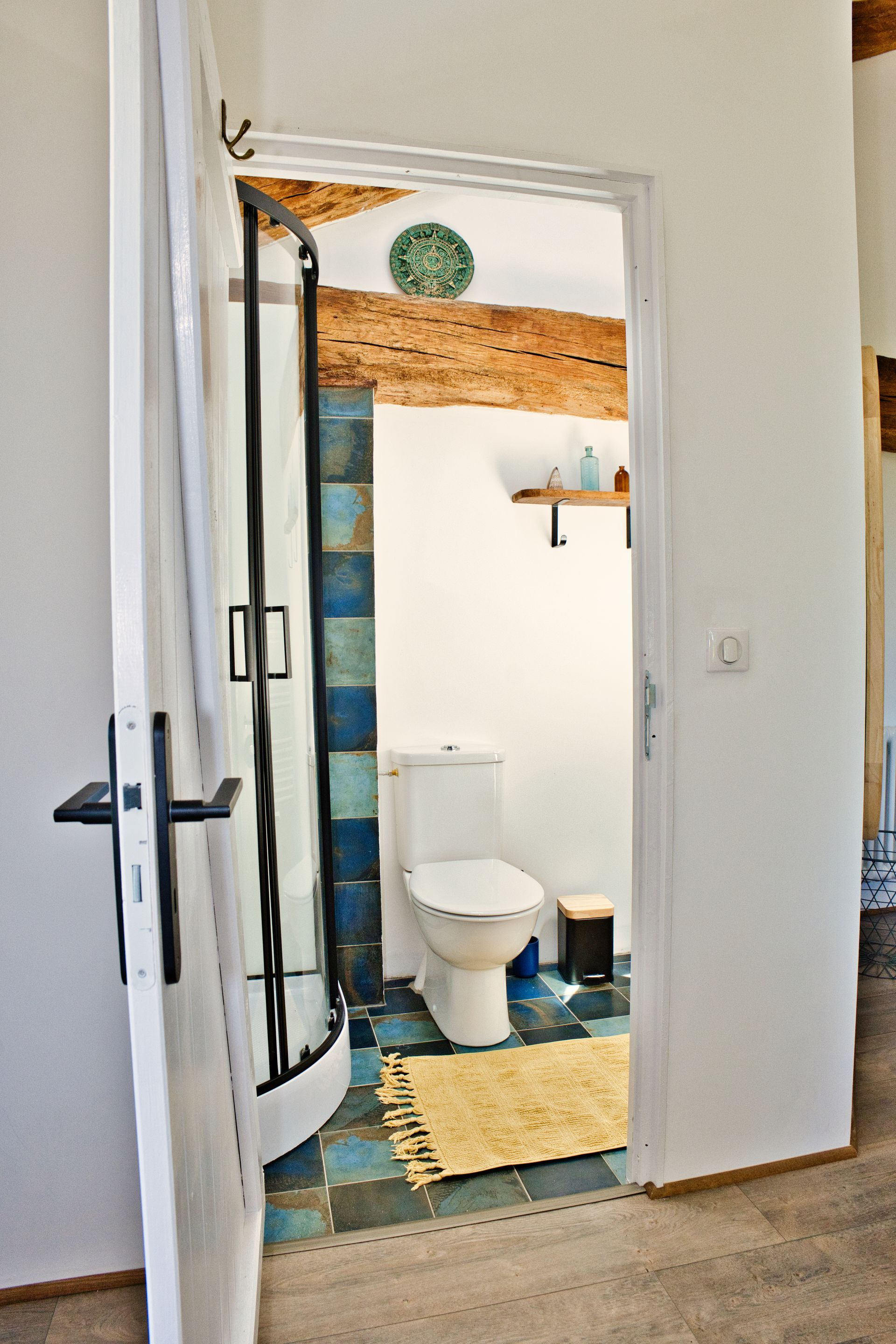 This dual aspect bedroom enjoys sunrise views over the gardens and swimming pool from the King Size bed (160cm). The stunning vaulted ceilings and beautifully curated bohemian furnishings make this a picture-perfect room. You'll also find everything you need for a comfortable stay; double wardrobe, chest of drawers, full length mirror and hairdryer. The tastefully designed en-suite has a shower, sink, loo and heated towel rail.
